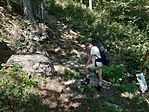 Keményebb kötésűek lemehetnek a kocsiút felé is (a kék barlang-jelzés folytatódik is erre), a GPS szerint 150 m távolságon 100 m a szintkülönbség (67%-os lejtő). Aki felfelé ezen a meredek úton szeretne menni, a kocsiútról az N47 17.383, E17 45.506, 533 m pontnál térjen jobbra.