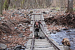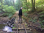 -t. Innen a sínek már jól mutatták a ládához vezető utat. Minden kis vízesést, minden hidacskát megcsodáltunk. A Postás-házhoz érve, már messziről láttam egy félpucér alakot. Gondoltam, talán tündér, aki ránk vár ;o) Közelebbről szemlélve férfi volt az illető, így elvesztettem mindjárt az összes érdeklődésemet is e témában :o( Ezután a ládára koncentráltunk, ami simán meg is lett. A két fontos jelszó rögzítése után, startoltunk vissza a síneken.