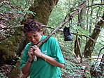 A láda megtalálásáról annyit, hogy nálam volt a műszer, Gyuri bácsinál a leírás és a rejtek-fénykép. Ő nyert. Míg a műszer engem felzavart a hegyoldalba a másik parton, ő simán a ládához sétált... Senki ne higgyen a műszernek, közvetlenül a patakparti ösvény mellett kell keresni :) .