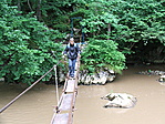 Mivel a patak rendesen meg volt duzzadva, a köveken átugrálást hamar elvetettük. Mivel rendes kesser nem adja fel, átmásztam a kifeszített drótkötélen. Érdekes volt fejjel lefelé lógva bámulni az alattam futó patakot.