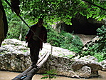 A patakon összesen négyszer kell átkelni, előbb két vaslemez-fűggőhíd, majd egy biciklilánccal összefogott, két gerendából álló fahíd. Ha ezen - a fényképen is látható - fahídon átjutottál, akkor jobbra indulva kb. 200 méter a barlang. Ha balra indulsz, akkor kb. 200 méter a vassodronyig, ... mi egyszerű emberek voltunk, nem tűztünk ki gyenge fizikumunk elé megoldhatatlannak tűnő akadályokat, azaz nem sodronyoztunk, hanem egyszerűen átugráltunk a köveken a bal partról a jobbra. Innen felfelé kb. 100 méter és közvetlen a gyalogút szélén adja magát a láda. Azért írtam le mindent ilyen pontosan, mert nekünk nem nagyon volt GPS vétel a szurdokban.