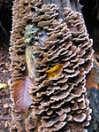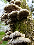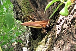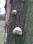 "A képen egy úgynevezett taplógombát látni, ami fák törzsén vagy tuskóin élősködik/szimbiózisban él. A budai hegyekben, tölgyes-bükkös erdőkben gyakori.