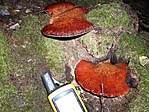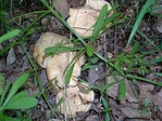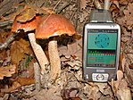 Sátán tinóru (Boletus satanas): mérgező. [hittem én, közben meg Bíbortinóru - javítva 2006.12.29.] A GCMIKO felé a Huta-patak völgyében találtuk 1,34 km-re a ládától. Szép nagy példány. Általában a pirosas-vöröses szárú tinórukat (pl. Farkas tinóru is) nem szabad megenni.