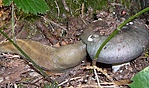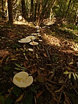 Mindkét mellékelt fénykép akkor készült, amikor GCGALL-hoz (Nagy-Galla, snake ládája) a zöld jelzésen mentem fel. Az 1. fényképen látható példány fokhagymaszagú szegfűgomba (Marasmius Scorodonius). Jellegzetes szagáról könnyen fel lehet ismerni. Főként fűszergombaként használják. A völgyben, ahol a fénykép készült, terjengett a gomba jellegzetes szaga. A 2. képen látható gomba a fattyú-kucsmagomba (Mitrophora Semilibera). Süvege hegyesen kúpos, méhsejtszerűen gödrös, alsó része nem nőtt a tönkhöz, kissé eláll tőle. A süveg és a tönk belül egyetlen üreg. Süvege rövid, csak 2-4 cm magas, hegyesen tojás alakú, kúpos. A tönkkel fele hosszúságban nőtt össze, ezért a széle alul a tönk körül elálló, közte és a tönk között hézag van. Színe sárgásbarna, zöldesbarna. Felületén a gödrök hosszúkásak és sorokba rendezettek. Az elválasztó bordák többé-kevésbé párhuzamosak, feketések. Spórapora fehéres. Tönkje hosszú, alul szélesebb, felül vékonyodó, 4-10 cm hosszú, az egész gomba kb. 8-14 cm magas. Színe fehér, sárgásfehér. Felülete felül lehet kissé árkos, barázdás. A süveg és a tönk belül egyetlen sima felületű üreg. Húsa merev, viaszszerűen puha, törékeny. Szaga jó, liszthez hasonló. A fényképen látható gomba kalapját akkor, amikor felfelé mentem a hegyre, döglegyek szívogatták. Visszafelé jövet a gomba kalapját el is fogyasztották, csak szárának fehérsége virított az árnyas erdőben.