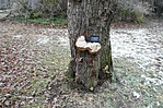 A tatai tó mentén a Tatai vár(GCTAVA) és Lovas szikla (GCttls) ládák felkeresése között akadtam rá a képen látható gombára, mely vélhetően egy almafa-rozsdástapló (inonotus hispidus).