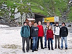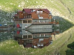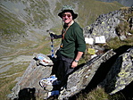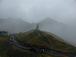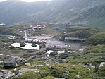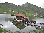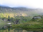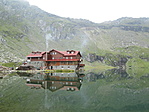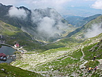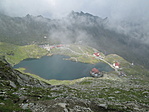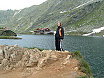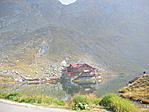 A Bilea-tó partján sátraztunk-bivakoltunk, az alagúttól nem messze. Egész éjjel egy kóbor kutya őrzött minket, ugatott, és mivel tilosban jártunk, féltünk, hogy valaki direkt ültette oda... Már 7-kor felkeltünk, hogy nehogy valaki ránk szóljon... Olyan köd volt, hogy az orrunkig nem láttunk el, és majd megfagytunk, pedig volt nálunk meleg ruha... A köd sokáig nem szállt fel, mi pedig a hideg elől behúzódtunk a menedékházba - itt teáztunk, mikor Andiék 6-an megérkeztek. Vártuk a jó időt, hiszen aznapra a Negoiu csúcs megmászását terveztük... Aztán mikor 11 körül foltokban már látszott a kék ég, elhatároztuk, hogy ha a Neoiu-ra nem is, de a gerincre, a ládához felmegyünk. Az elhatározást tettek követték, és kevesebb mint 1 óra múlva már a ládánál ettük a csúcscsokit. :-) A gerincről meseszép a kilátás a másik tóra, a hegyekre, a szerpentinre, és a szélvihar ellenére nagyon-nagyon élveztük a rövid túrát.