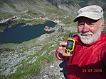 Későn indultunk és ráadásul a Transzfogarasi úton volt egy dugó is, így nem tettünk körsétát. Leparkoltunk a Bilea-tónál, és a kék háromszögön, aztán a piros sávon értük el a Kecske-tó csúcsot (Varful Iezerul Caprei), ahol meg is találtuk a ládát az A4-es méretű kő alatt, nem messze egy piros sáv jelzéstől. Lent a tónál nem sütött a nap, de feljebb már csak a hegyek pipáltak és csodálatos látványt nyújtottak. Visszafelé se volt könnyű lépegetni. Sokan voltak a hegyen és még többen a tónál, ahol mindent lehetett kapni. Vettünk főtt kukoricát, lángost (tévedésből porcukrosan - nem is rossz), kenyeret, hűtőmágnest, és az igen drága parkolóból visszatértünk Szebenbe. (A parkolóőrök magyarok voltak.)