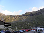 Viszonylag korán 12:30-kor értünk oda. Már a sík területről érkezve elbűvölt a hegyvonulat látványa. Az autóból a szerpentinen rengeteg képet csináltunk, de ami a tónál várt az fantasztikus. Sokat nem is tétováztunk, nagyobb lelkesedéssel, mint tapasztalattal, rövid tanácskozás után nekivágtunk a hegynek. Mi a rövidebb, meredekebb úton támadtunk. Figyelembe véve azt, hogy 2400 fölé megyünk és a túraleírást, mi vittünk termó pulcsit és vízthatlan sídzsekit. Látva néhány lefelé szinte szaladó túristát rövid újjúban, rövid nadrágban, 20 kg-os zsákkal, kicsit furcsánsk tűnhetett. Kb egy jó óra alatt értünk fel a második ponthoz. Kicsit mérgelődtünk az idő miatt, itt vettük fel a kabátokat. Őrülten szaladó felhők, bár a szél nem tú erős, a nap is eltünt més útközben. Mondanom sm kell, úton oda az autóban végig láttuk a hegyet, felhő se előtte, se mögötte, csak a gerincen olyan tejszínhab szerűen.