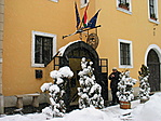 Csütörtökön a láda első pontjával kezdtük a vadászatot PI-vel. A labirintusba nem sikerült bemennünk, mert le volt zárva, de a tábláról sikerült leolvasni a jelszórészletet. Ezután felmentünk a várba, ahol az utcatábla alatti tábláról logoltunk. A harmadik (jobban mondva az első pontot) ma kerestem fel. A kapu feletti baglyok száma megadta a hiányzó jelszórészletet.