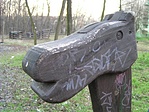 Bringas talalat. A talajviszonyokra tekintettel gondoltam csak ott megyunk be az erdobe, ahol mar a ladaval egyvonalban vagyunk.A tanosveny eleje kisse elriasztott, de a kovetkezo bejarat sem volt szebb (tavasz van, nyilik a muvirag, szanaszejjel az utmellett..), a felem rohano jolmegtermett kutya pedig enyhen ijeszto volt. Egyre jobban utalom az ilyen kutyasetaltatos helyeket. Persze errol sem a rejto, sem a tanosveny kiepitoi nem tehetnek. A ladahoz legkozelebb eso ismertetotabla egyszeruen olvashatatlan volt a sok firkatol, akovetkezon viszont nem volt firka..tabla se volt, kivertek..:((