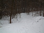 Mennénk körbe, az ajánlott úton, de semmi értelme. Minden lerombolva, szemét, és csúnya szavak a hóba kaparva. De még mindig kedves az erdő...