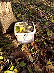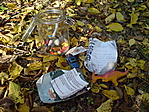 Sajnos a közeli lakótelep ifjú nemzedéke és a ládától pár száz méterre most épült új lakótelepi rész (nem tudom hogyan sikerült nekik engedélyt kapni a tájvédelmi körzeten belüli építkezésre, de tény hogy jódarabot levágtak az erdőből) építési hulladéka elborítja a ládát. Ahogy vége az ősznek, egyre jobban előtűnnek az elkomposztálódó avar alól a szemétkupacok :( Ezért ma közvetlen GeoBubó után ládakarbantartás címén pár száz méterrel arrébköltöztettem a ládikót és jól fel is töltöttem mindenfélével.