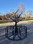 A Duna parton a jégtörő gát közelében felállított, a kerékpárút építése kezdetének emléket állító tábla