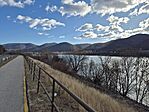 6. Tovább haladva elérjük a tervezett vízierőmű egykori építési területét. Tájképi szempontból a kerékpárút legszebb része következik : a Dunakanyar. A kerékpárút a 12-es út közvetlen közelében, de attól szalagkorláttal elválasztva halad. A