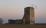Rendezett környék, szép rom... kár, hogy a piknikezők a szemetet a torony belsejébe dobálják. A rom környékén ürgék tanyáznak, többet is láttunk - na meg a rájuk vadászó ragadozómadarakból is.