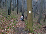 jelzésen, melyet elég nehéz volt megtalálni. Az elágazásnál uis a tábla megvan, viszont az ösvény egyáltalán nem látszik, jelzés pedig csak 150 m. megtétele után van... (És még mi mondtuk, hogy az erdélyi jelzések gyérek. VISSZASZÍVOM!!!)