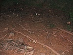 jelzésen. A pocsolya ki volt száradva. Röfikkel nem találkoztunk. A láda könnyen meg lett. A hosszú kidőlt fatörzs már nincs ott, csak száraz törzs csonk a rejtek felett. A doboz meg van repedve és lukas, cserére szorul.