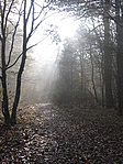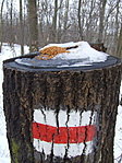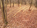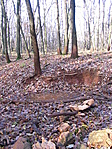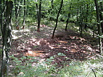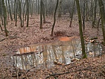 jelzésen. A Vörös pocsolya a túrista térképen is jelezve van, tehát nyugodtan sétáltunk (GPS a zsebben) keresve a vizet és a dagonyázó vaddisznókat. Aztán, amikor elővettem a műszert megnézni milyen messze van még, kiderült, hogy már több mint száz méterrel túlhaladtunk. Visszafordulva (és figyelve) hamarosan megpillantottuk a vörös törzsű fákat és a mélyedést, amiben most se víz, se vaddisznó nem volt. Visszafelé a