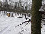 A Garay vár után Kyra ide navigált. Csodás hely. Itt biztos nem lesz klausztrofóbiás tünete az embernek. Alig egy-két ember lézengett csak a környéken. Könyed sétával értük el a rejteket. Láttam már egy két feltünő rejtést, de ez egy kiemelkedő diszpéldánya volt. Ha nem lett volna ráhalmozva a fakéreghalom se lett volna kevésbé feltünő. A doboz méltóan a helyhez nagy üres térrel rendelkezik, alig lézeng benne valami. Kyra nem nyugodott addig mig meg nem találta a kis barna kupac maradványát, amit még Pupuval fedezett fel. Hiába, valaki maradandót akart oda alkotni, amit még a fagy meg a hó se tudott teljessen eliminálni.:) Vidám nevetgéléssel hagytuk el a rejtek helyszinét. Távozás előtt még megnéztük a tavat, amiben most talán csak a belviznek köszönhetően mutatkozott némi viz.