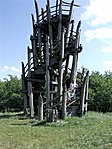 Egy éve betegeskedik ez a láda. Eljöttünk megnézni, hogy mi is van itt. Gyereknapi ramazuri volt. Téka népművészeti tábor. Nem is csoda, hogy ide szervezték a gyerekes programokat, mert igen jó helyszín. Van itt minden. A csigavonalas Ekler Dezső tervei alapján épült kilátó tetszett a legjobban. 44 lépcsőfok.