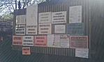 A kilátó mellett feküdt pár deszka és rajta egy papír, hogy "a kilátó életveszélyes" (mi túléltük a megmászását).