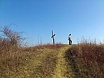 Negyedik pont: Amint meglátod a keresztes tárgyat, menj a háta mögé: a mikroládát mögötte találod egy kő alatt. (Senkit ne zavarjon meg, hogy egy com-os láda a szomszédom. Akit esetleg ez zavar, elnézést kérek, én is csak véletlenül fedeztem fel, nem cél volt "rárejteni"). Írd fel az 5. pont koordinátáját, ismételten jelöld be a kinyomtatott térképen hol is vagy, és menj tovább az utadon. Pót: Az út túloldalán É-ÉNY lévő fa villanyoszlop mögött, a kerítés mellett lévő beton villanyoszlop aljában.