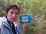 A ládát ötödik alkalommal is újratelepítettem tavacskától észak-nyugatra az erdőben eredetileg egy bokor tövébe. Idővel átkerült egy kis rozsdás hordóba. Ha nem látod guggolj le.