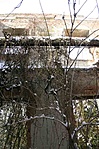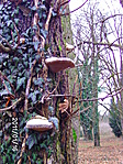 Miután eléggé elment a kedvünk az egésztől, inkább ládát keresni indultunk. A kastély valamikori parkjának maradványai még sok helyen felismerhetőek; a gondozás híján hatalmasra nőtt, elburjánzott fák és cserjék emlékeztetnek az egykori állapotokra. És igaz ez a bukszusdzsungelre is, ahol a láda van... Egykor talán labirintusnak készült, mostanra az is lett. Párszor körbejártuk, de valahogy nem akaródzott bejárata lenni, a ládaoldalon emlegetett "négykézláb" megközelítést meg nem akartuk elhinni. A műszer azonban kitartóan bele mutatott, és már éppen azon voltunk, hogy feladjuk, mikor találtunk egy viszonylag jó befelé menő járatot. Ezen ugyan nem lehetett felegyenesedve járni, inkább csak félig guggolva, viszont 2-3 méter után ott volt a láda, nem kellett bemenni a közepére...