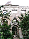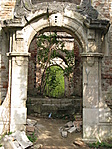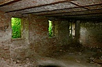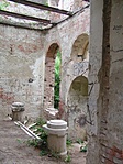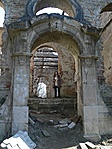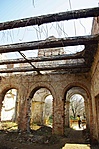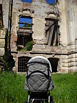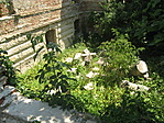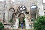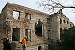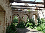 Aztán kicsit odébb megtaláltuk a kastélyromokat, bejártuk mindenfelől. Nem mondhatni, hogy a félig megmaradt lépcső, a beszakadt tetőroncsból kiálló betonvasak, vagy éppen az egykori szobák padlójára halmozott földkupacok és a belőlük kinövő gyomok túlzottan kellemes érzéseket ébresztettek volna. Az egykori erkély kerítésének díszköveit is letördelték, szétverték, az oszlopfőkből szinte semmi nem maradt...