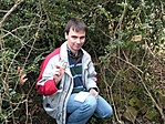 A láda rejteke könnyen meglett, miután lepöccintettem magamról néhány kisebb kullancsot meg is lett a láda. (Otthon még találtam magamban kullancsot!) Nem volt letakrava én álcáztam. Szerintem rossz a rejtés, télen, ha nincs se hó se lomb könnyen megtalálható lehet így másoknak is. Ráadásul nagyon forgalmas a környék. Alig tettem néhány lépést a rejtektől, két bicajos srác állt meg: Csókolom, maga az erdész? Nem fiam, csak úgy nézek ki.