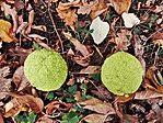 Az egykori kastély parkban egy kellemes őszi séta keretében találtam meg. Kedvelem Szoke-Kiss rejtéseit, sok elfeledett kastély- és kúria romot mutat meg. Rengeteg zöld teniszlabda volt a környéken: hullott a narancseper termése.