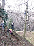 A szombati nap ellenére sajnos dolgoznom kellett, így nem sokkal három előtt értem haza a munkahelyről. Nem vagyunk szűzláda-vadászok, de gondoltuk ezt megpróbáljuk, ha már ilyen közel van. Ugrás be a kocsiba, benzin alig van benne, de sebaj, nyomás Bozsokra, talán kitart hazáig. A 89-es leágazótól gyanús zöld Escort követett, párszáz méterre a kastély előtt előzött meg, ahol rossz fele fordultam. A kastélypark bejáratánál újabb gyanús autó: egy fehér Mitsubishi; úgy látszik, nem leszünk elsők. A falhoz érve láttuk, hogy settenkednek a láda körül, így vártunk egy percet, és csak utána indultuk a ládához. Egyből kiszúrtuk, hogy hol van, nagyszerű a rejtés, pontos a koordináta, nem kell a dzsungelharcot vívni. Logbook alapján még befutottunk a dobogósnak, aminek nagyon örültünk. Lefelé nagy derültséget okozott, hogy egymás után mindketten elestünk a csúszós talajon :)