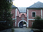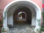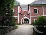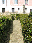 A főbejárattól jobbra lévő nyitott kapun keresztül is meg lehet közelíteni a kastélyt.