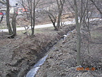 Leparkoltunk a megadott parkolóban, és jött a szívatás: Végigmarkolózták a patak-medret kb. 1 m mélyen. A kikotort földet felhalmozták a patak mentén. A problémát az okozza, hogy olyan széles az árok, hogy nem lehet átugrani és olyan mély és meredek, hogy ha belemászunk, nem lehet kimászni belőle! :o(