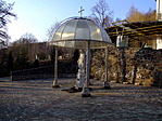 Azután templomlátogatás, a szent forrás vizének begyűjtése következett (Valóban isteni íze van!), majd hosszas elköszönés a drága remetétől és irány a láda. No de a nagy hóban a sebtiben elolvasott ládaleírás emlékével a fejemben nem akart könnyen meglenni a csésze.