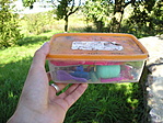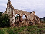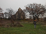 A kőtengeren keresztülsétálva Kisörspusztán kötöttem ki, de itt az eltervezett utat úgy tűnik megszüntették/elbányászták/stb..., nyoma veszett. Végül - többedik próbálkozásra - sikerült találni egy erdei utat, amely kikerülte a bányát. A Balatonrendes fölötti szőlők közt kalandozva, majd Kővágóörs határában délnek tartva értem el a romot és a ládát, amely az első ezen a túrán.