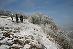 A pilisszentkereszti temetőtől közelítettem meg a piros majd a zöld jelzésen. A keleti oldalon jeges, havas út (ennyit életemben nem taknyoltam, mint most ezen az úton a hó alatti alattomos tükörjég miatt), a déli, délnyugati oldalon pedig már tavaszi állapotok. Odafenn nagyszerű kilátás, a láda gyorsan előkerül a hó alól. Idő viszont nincs a nézelődésre, mert lefelé még nagyobb csúszkálások várhatók. Ez be is igazolódott.... Más időben talán kellemesebb lett volna ez a látogatás, de most sem panaszkodhatom (nagyon). Köszi a rejtő(k)nek: Gyuri