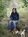 Dolly, a már nem annyira fiatal törpe uszkárunk is velünk volt. Mikor túrázunk, mindig úgy viselkedik, mint egy kölyökkutya, sosem fárad el. Ezen az úton, ahol időnként elég nagy sziklákra kellett fellépni, egy kicsit gondban volt, így néha hátulról segítettünk neki ;-)