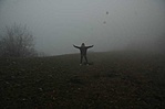 Hurrá, repülünk. Fantasztikus a kilátás. A talaj egyszer csak eltűnik a lábunk alól. Miért is nem hoztunk pár siklóernyőt, vagy mit? Azért a ruszkik mindig is tudták, hogy merre vannak kishazánk szép tájai :-/. Sajnos mi már vagyunk annyira öregek, hogy első itt jártunkkor még katonák zavartak le a hegyről. Most viszont vígan játszottunk orosz dalokat a hangárakban. Az akusztika nem túl jó, de azért élvezzük. Nemtom próbáltátok-e már, de ez a tánc nagyon nehéz. Tata kamuzott és csak kicsit rúgkapált, Péter egy ideig bírta, de amikor mondtam, hogy azt karba tett kézzel kell egyből elesett. Én meg csak pengettem a balalajkát. Az ujjam kicsit megsínylette a dolgot, mivel nem hoztunk pengetőt.