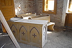 Már jártunk itt, de akkor nem merészkedtünk be, és nem is volt ennyire beomolva a tető. Elég nagy kuszaság lehetett a felújító fejében, mert logikátlanul és összevissza fogott hozzá. Kár érte. Még így pusztulásában is impozáns az aprólékosan megmunkált kis részleteivel. Köszönjük a rejtést!
