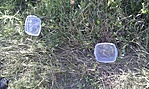Az egyik kerítésoszlop mellett találtuk ezeket a "geotojásokat". Szóltunk az egyik járókelőnek, aki tudott róla, hogy a szomszéd tyúkjai "félretojnak". A szomszéd már kesselte, hova járnak a tyúkjai, csak még nem találta meg. Talán ha gyakorolna egy kis geocachinggal, sikeresebb lenne.