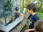 Nem tudom VP merre mehetett, mi inkább körbe jöttünk a kék jelzésen. (Utólag megtudtuk, van rövidebb út a faluba, de útközben dobermanokkal lehet találkozni...) Közben eltűntek a felhők, szép idő lett. Ali elbújt, így őt nem láthattuk, de visszaérve a körsétáról, etetés közben megnézhettük Vikit, a vidralányt. Mókás egy lény, különösen így, az emberhez szoktatva. A tanösvényre a pumi végig elkísért, mitöbb mutatta az utat, és nem engedett letérni az ösvényről. :))