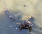 A vidrák jól idomítottan előjöttek a hívó szóra, egy kis jutalom hal reményében.