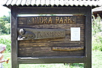Kaposvár felé haladtunk, és megláttuk a Vidra farm tájékoztató tábláját, ha már itt vagyunk, nézzünk be. A bekötő út elején tábla figyelmeztetett, hogy ez az út csak a vidrapark látogatása során használható, a park hétfőn és szerdán zárva tart. (ma szerda volt) Az homokos úton olyan tócsák voltok az előző éjjeli esőzés miatt, hogy autóval nem kockáztattuk meg a behaladást. mivel a biciklik nálunk voltak, át ültünk rájuk, és azért begurultunk a parkig. Itt csak az első táblát tudtok fotózni, (nem mentünk be a 2. tábláig, figyelemmel, az előző logokra és a kutyákra, valamint a lakóháznál szorgoskodó tulajdonosokra).