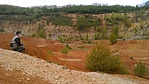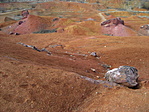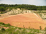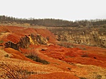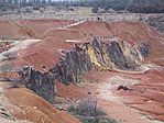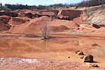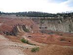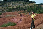 Az út túloldalán levő domból elég jól be lehetett látni a tanösvényt, valóban földöntúlinak tűnő tájt láttunk. A belépődíjat nem fizettük meg csak leolvastunk és továbbálltunk, hisz hasonlóan elhagyatott bauxitbányák felé vezetett még az utunk... GC20VR közben.