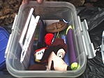 Itt is a kesserek kérték, mi pedig ismét csak a ládacsere programnak köszönhetően felújítottuk a szettet. Új dobozt és az elázott felszerelés - benne a logbook - helyett egyéb kiegészítőket is kapott ez a láda. Amit lehetett, azt szárítás után visszahelyeztünk. :) A hely maradt, viszont a láda szempontjából komfortosabb lett a rejtés. Amikor visszahelyezitek, vigyázzatok a gondos álcázásra! Kövek, faágak és egy kis avar...
