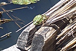 A mai nap legbalszerencsésebb ládája. Odafele minden rendben volt, megtaláltam a leskunyhóhoz vezető pallósort, ami azért nem volt egyszerű, mert a nád már teljesen benőtte és a palló rései között is nádszálak nőnek ki. Második kisérletre meglett a láda is, majd lefotóztam a kerékpárt a leskunyhóban és indultam vissza a kerékpárt tolva. Mivel elég rossz állapotúnak nézett ki palló, ezért inkább a hosszenti tartógerendák közelében mentm nehogy beszakadjak. Éppen ez volt a baj, mert az egyik gerenda nem bírta el a súlyomat és amintegy két méter hosszan beszakadt a mocsaras tóba. Repültem én is a bicikli meg rámesett. Szerencsére a GPS és a telefonom nem ért a vízbe - ami kb 70-80 centis lehetett az alján rothadó növényi maradványokkal. Először a bringát mentettem ki majd én is visszakapaszkodtam a maradék pallóra. A pallón/hídon most egy kb két méteres hézag van, tehát a ládát nem lehet megközelíteni. Amúgy is el kellene innen vinni, mert ez az eset is bizonyítja, hogy bármikor beszakadhat. Az áthelyezésig megszüntre kellene állítani nehogy mások is próbálkozzanak.