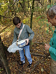 Az első, nem virtuális ládikó megtalálásunk :) Eléggé kalandos utunk volt odafelé, mivel autóval próbáltunk a közeli földúton a töltésig jutni, de egy idő után csak maximum tankkal tudtunk volna továbbmenni. Így aztán úgy döntöttünk, hogy a szántóföldön keresztül közelítjük meg a helyszínt. Nem volt jó ötlet... Orkánerejű szél és egy rendkívül kíváncsi őzbak nehezítette a körülményeket, így aztán visszamentünk az autóhoz. Az 1 km-re lévő műutat is megtaláltuk, onnan próbálkoztunk újra gyalog. Akkor még csak sejtettük, hogy a szembejövő pár is hasonló céllal kirándult arrafelé, később a napló alapján viszont bizonyossá vált, hogy Geoditkéékkel találkoztunk szembe az úton. Innen a megtalálás már egészen könnyen ment, bár én jót toporogtam a GPS-szel a fa tövében, míg a párom fedezte fel végül a dobozkát a levelek alatt. :)