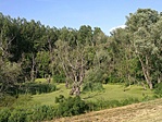 Felmentünk a töltésre bámészkodni, de sajnos a Maros innen még messze van. A rejtekhez a leírás szerint, az öreg tölgytől, az erdőben indultunk.