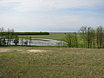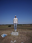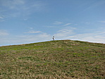 Homokos földutakon egészen a kis domb aljáig autóztunk. A bucka a maga pár méterével teljesen kimagaslik a környékből és a kilátás sem rossz a tetejéről. A hely története is tetszett.